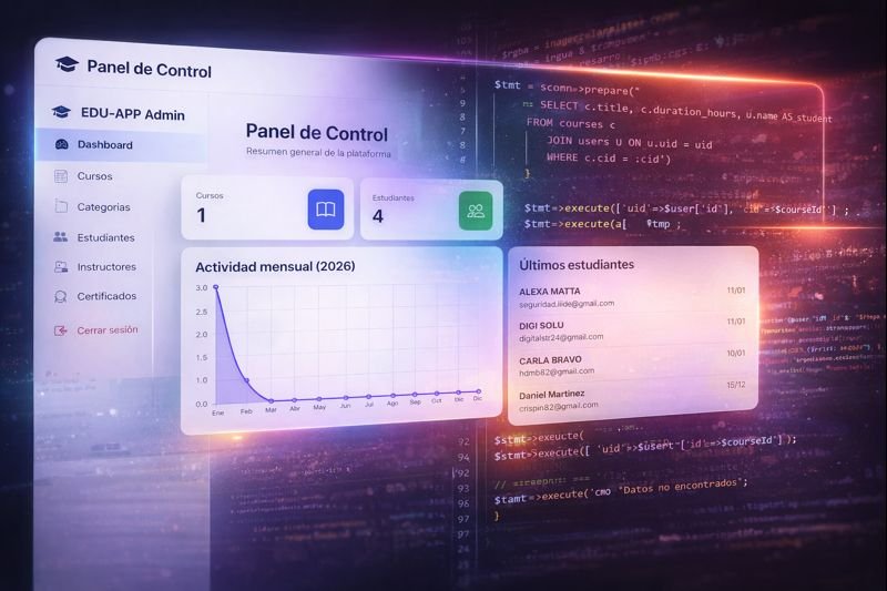 Esta plataforma educativa destaca por su versatilidad, velocidad y seguridad, permitiendo gestionar cursos, usuarios y accesos de forma ágil, confiable y adaptable a cualquier dispositivo.